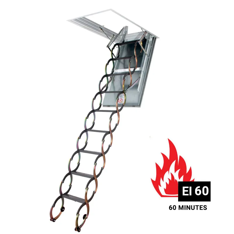 Электрическая лестница раскладывается и собирается всего за несколько секунд с помощью пульта ДУ. Механизм функционирует от обычной розетки, а специальное защитное покрытие обеспечит огнестойкость конструкции до 30 минут.