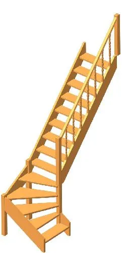 Деревянная межэтажная лестница ЛЕС-07 2880-3085 проем 2550-830, Бук