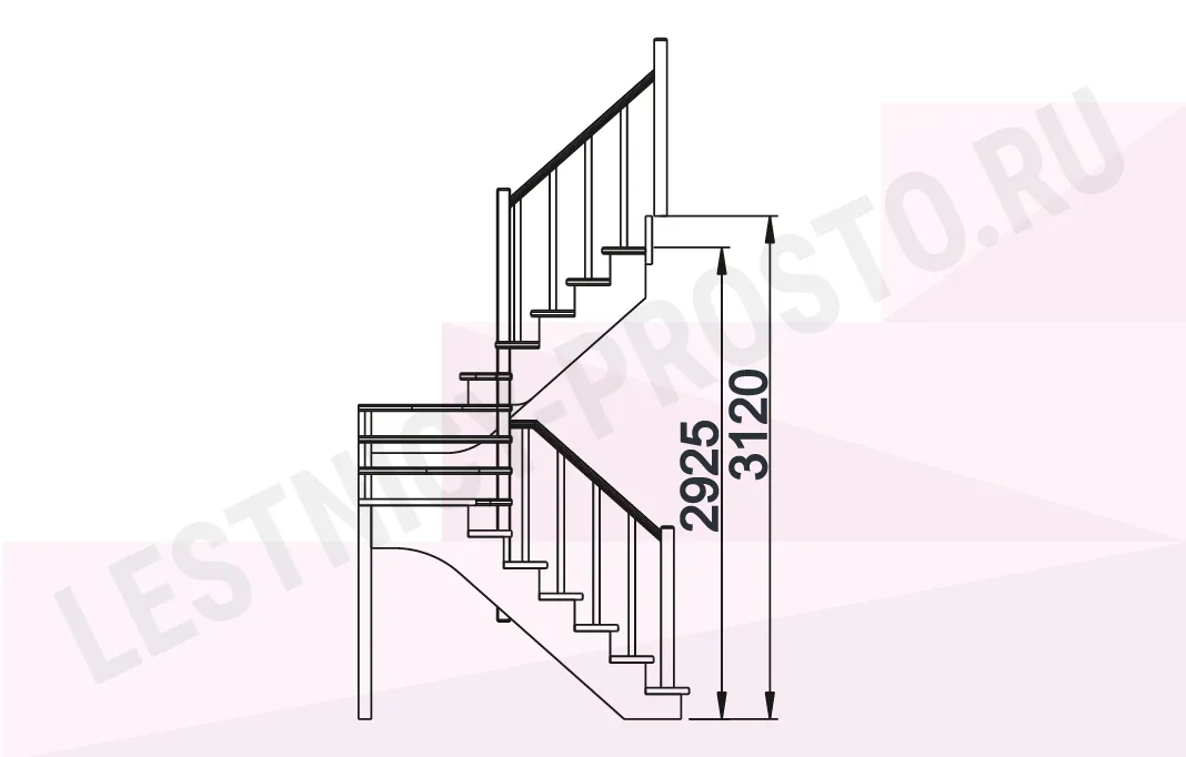 Схема лестницы К-033М с поворотом налево