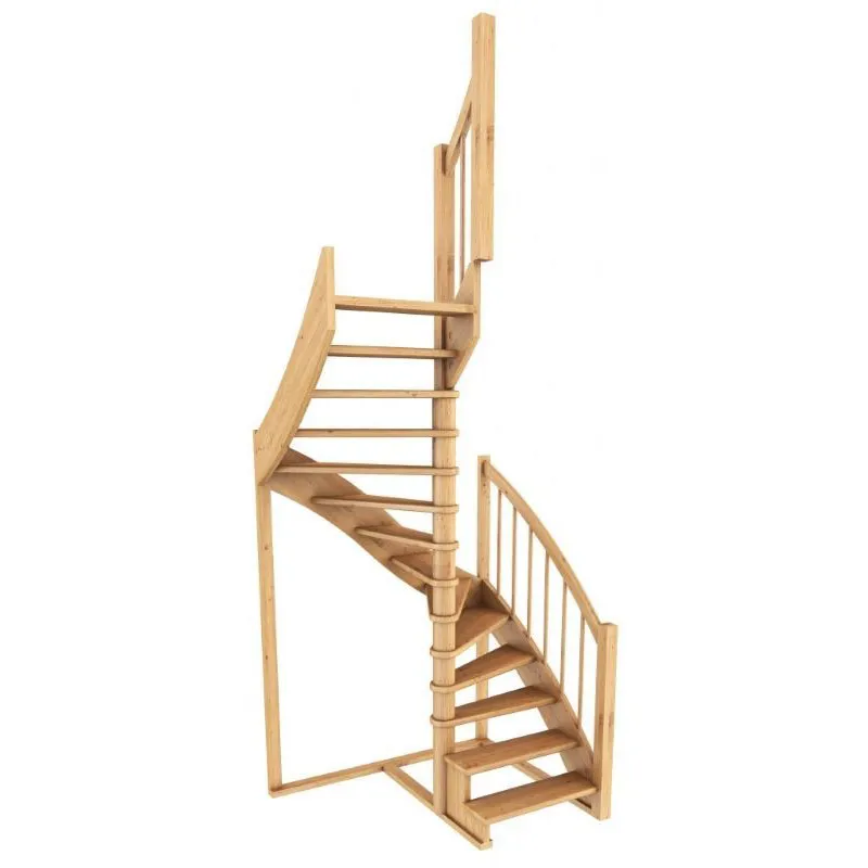 Ступени и поручень лестницы изготовлены из сращенного бука, остальные элементы лестницы (тетивы, столбы, балясины...) из массива сосны.