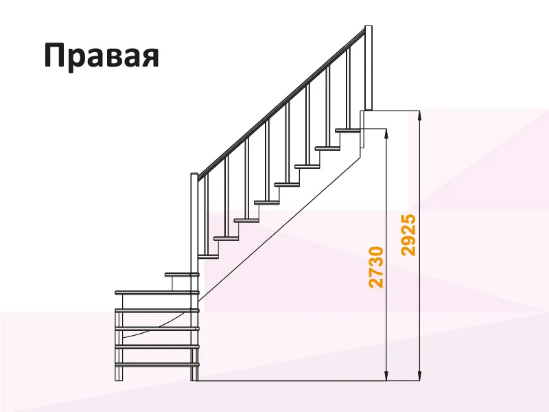 Лестница из сосны К-001м/1 под покраску с подступёнками