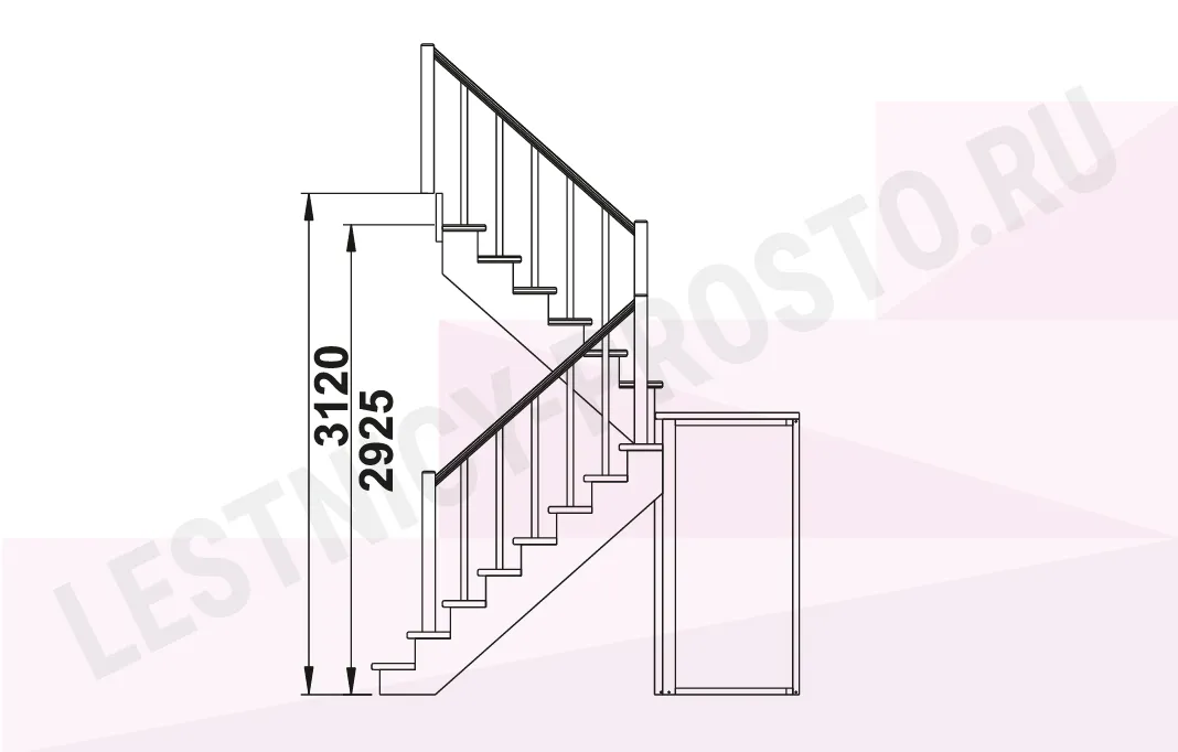 Базовый комплект включает в себя деревянные элементы лестницы с подступёнками и ограждения без какого-либо покрытия. Стандартное ограждение можно заменить любым на ваш вкус (стоимость может измениться).