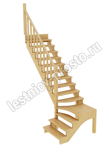 Базовый комплект включает в себя деревянные элементы лестницы и ограждения без какого-либо покрытия.