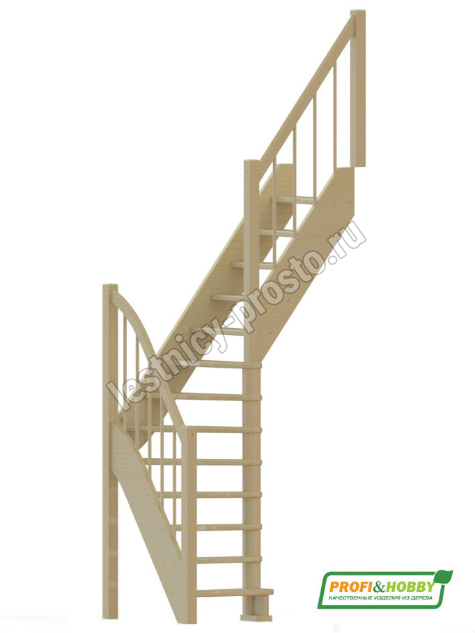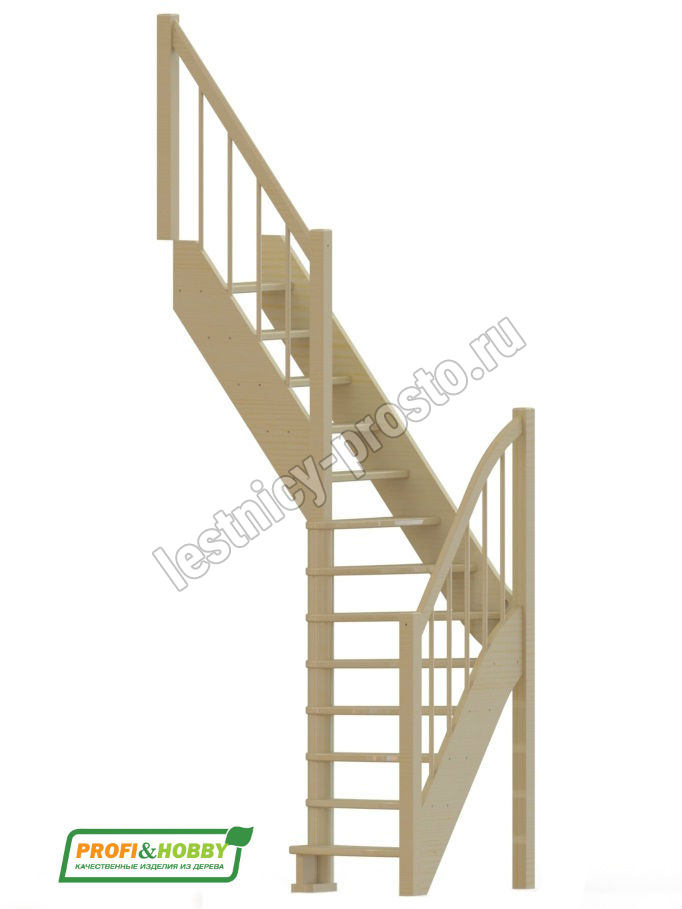 Базовый комплект включает в себя деревянные элементы лестницы и ограждения без какого-либо покрытия.
