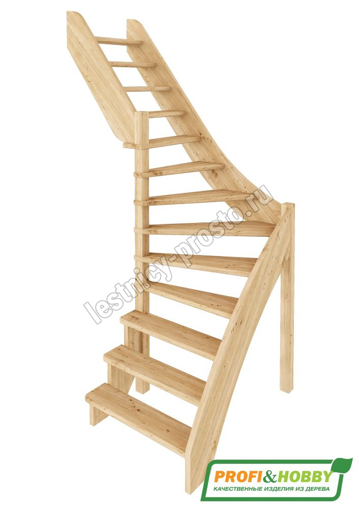 Базовый комплект включает в себя деревянные элементы лестницы без какого-либо покрытия.