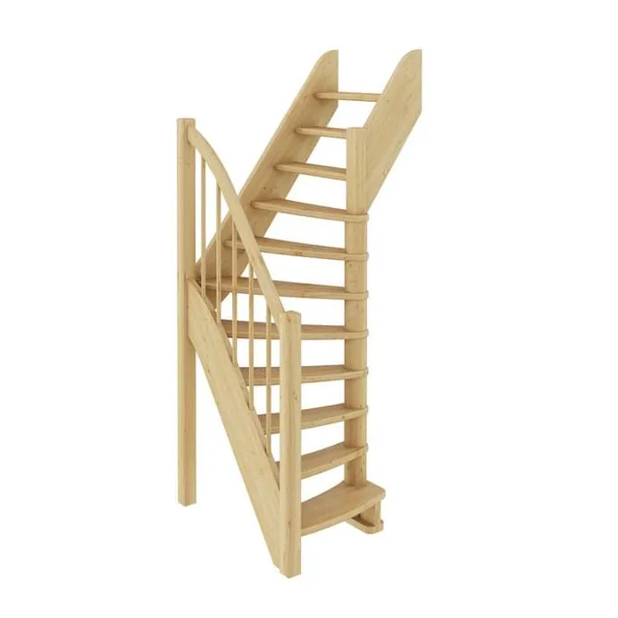 Базовый комплект включает в себя деревянные элементы лестницы без какого-либо покрытия.