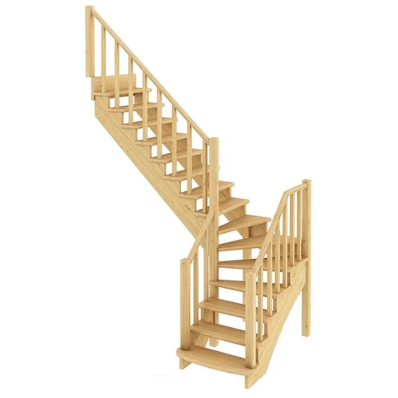 Ступени и поручень лестницы изготовлены из ясеня, остальные элементы из сосны.