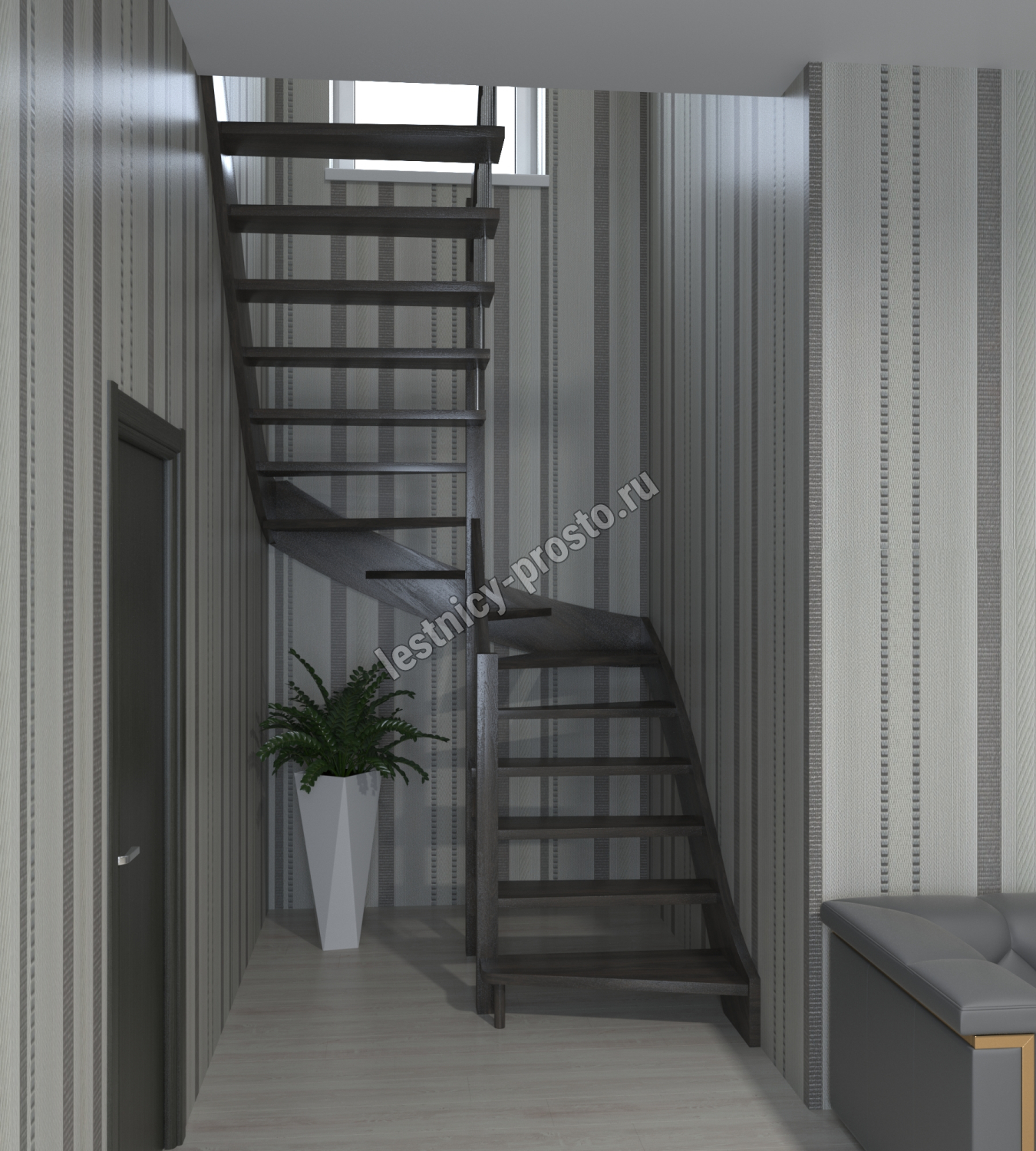 Лестница Prosto Console п-образная забежная, бук h320 см
