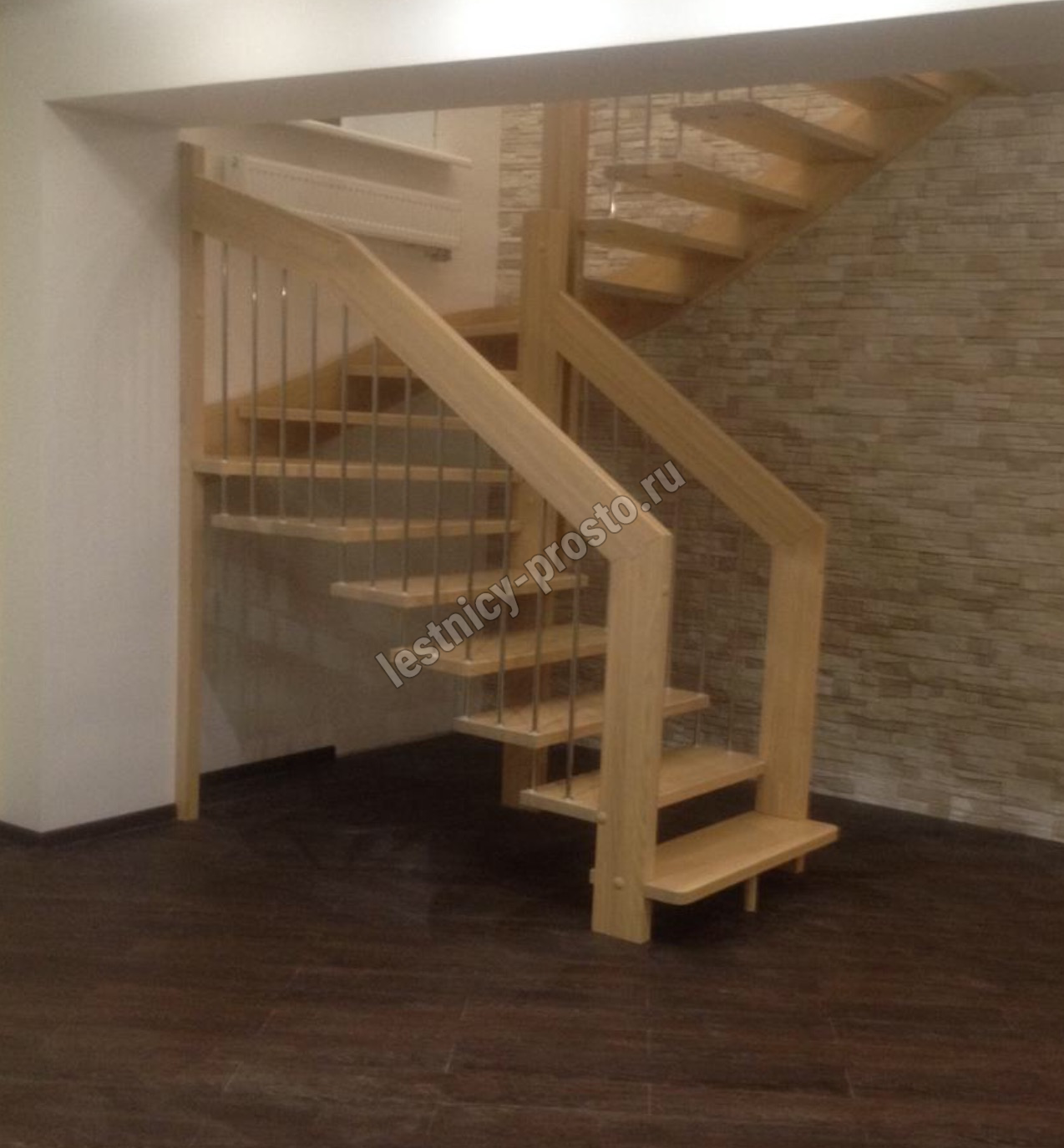 возможна комбинированная лестница: из сосны (ступени бук, ясень, дуб);