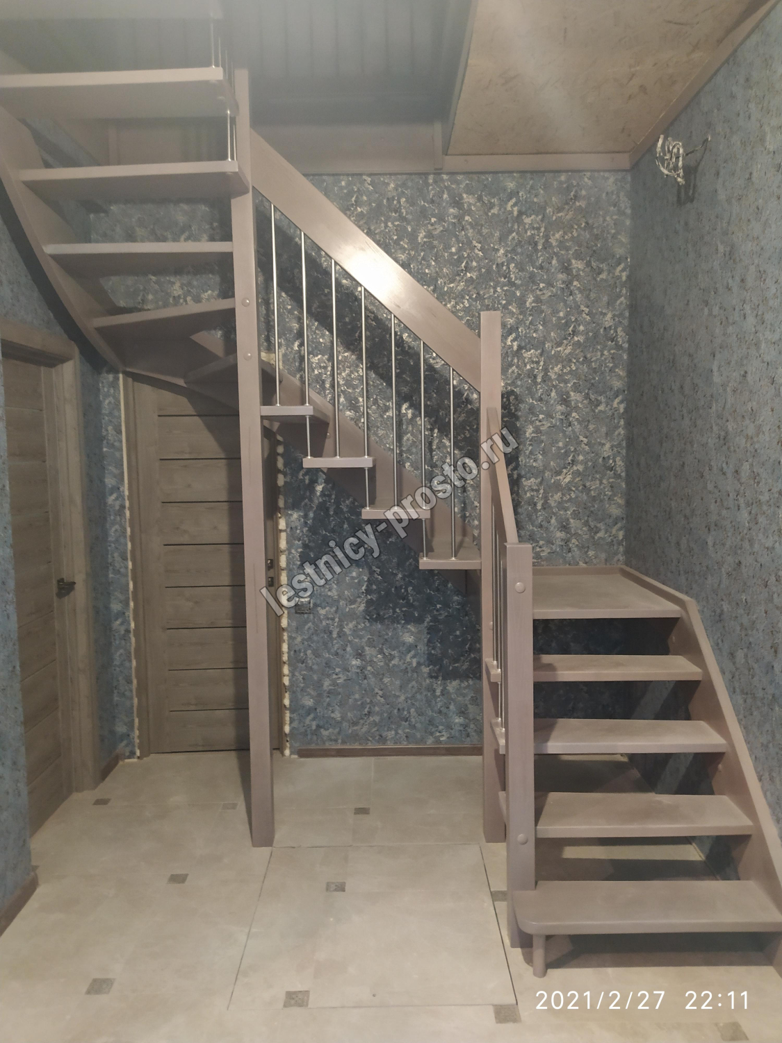 возможна комбинированная лестница: из сосны (ступени бук, ясень, дуб);