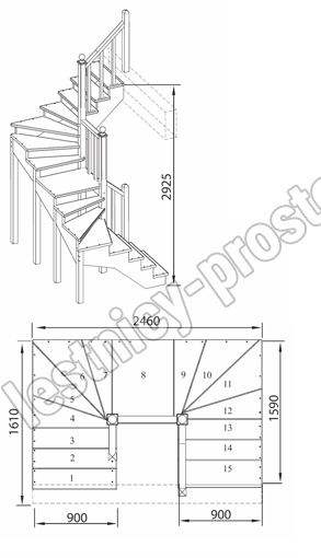 Высота лестницы 2925 мм