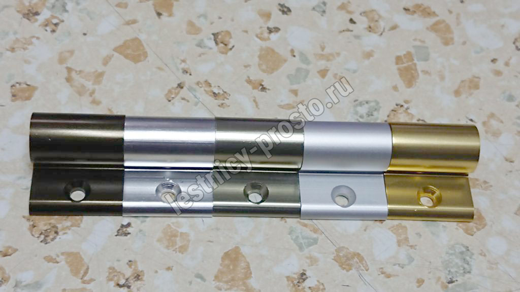 Ковродержатель комплектуется двумя держателями из алюминия цвета бронза, а также алюминиевой трубкой цвета бронза, длиной от 101 до 135 см.