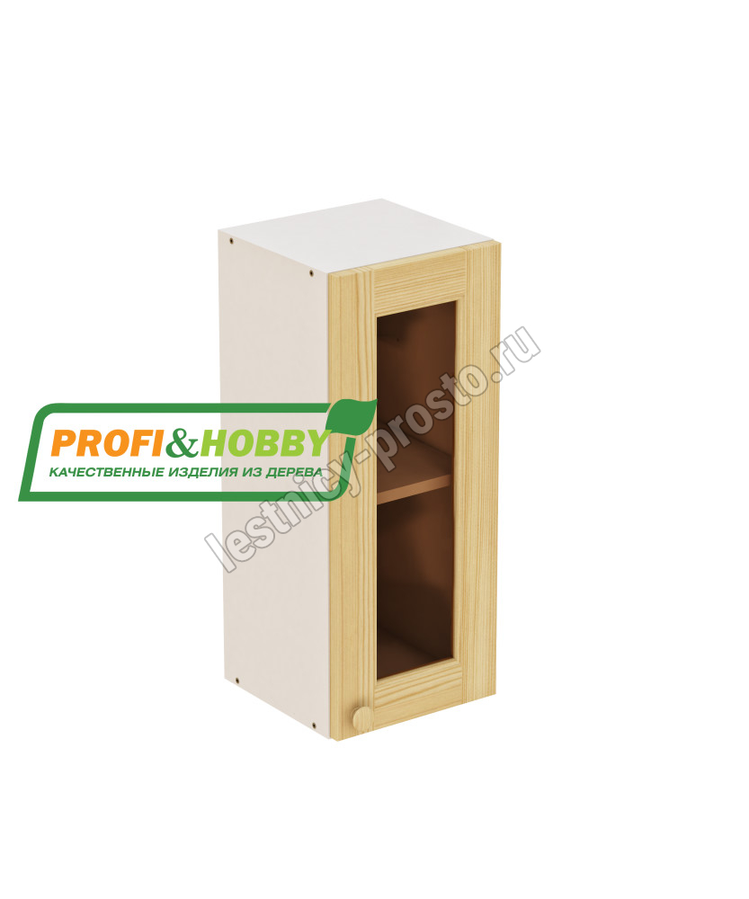 Шкаф навесной 300х340х720 + фасад сосна под стекло бесцветный акриловый лак