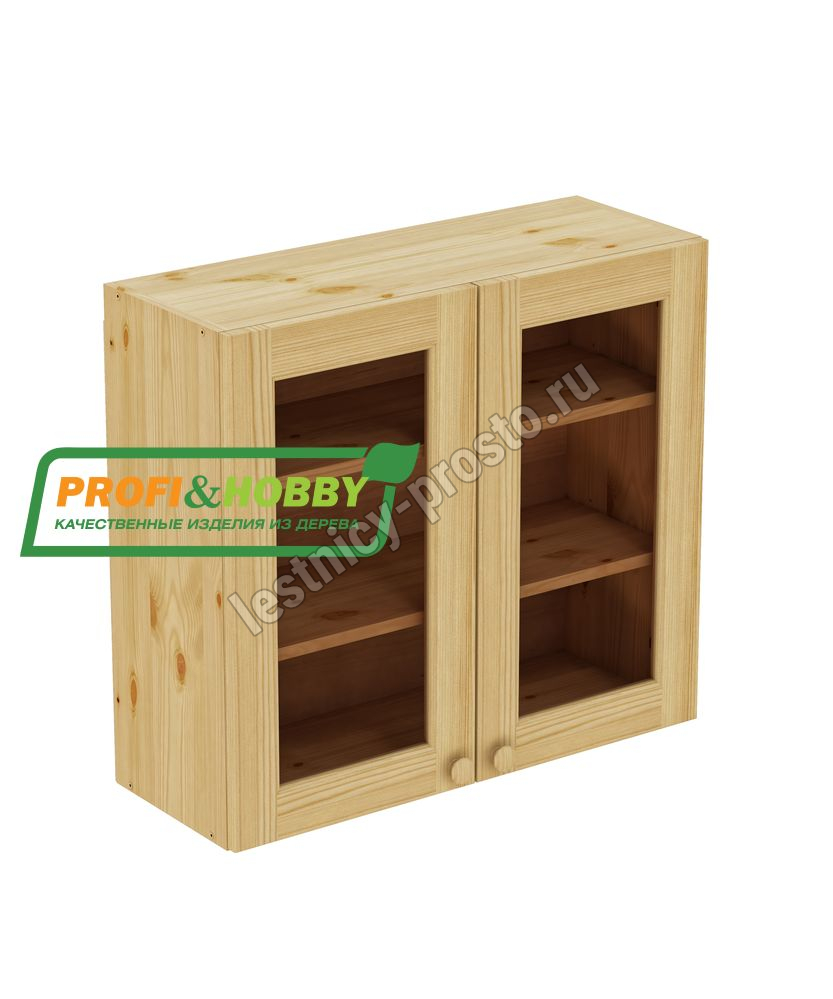 Шкаф навесной изготовлен из 100% массива дерева, без шпона и без МДФ/ДСП.