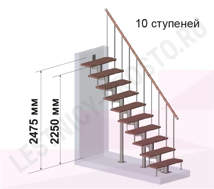 Модульная лестница PROSTO Module прямая/ h247.5 см