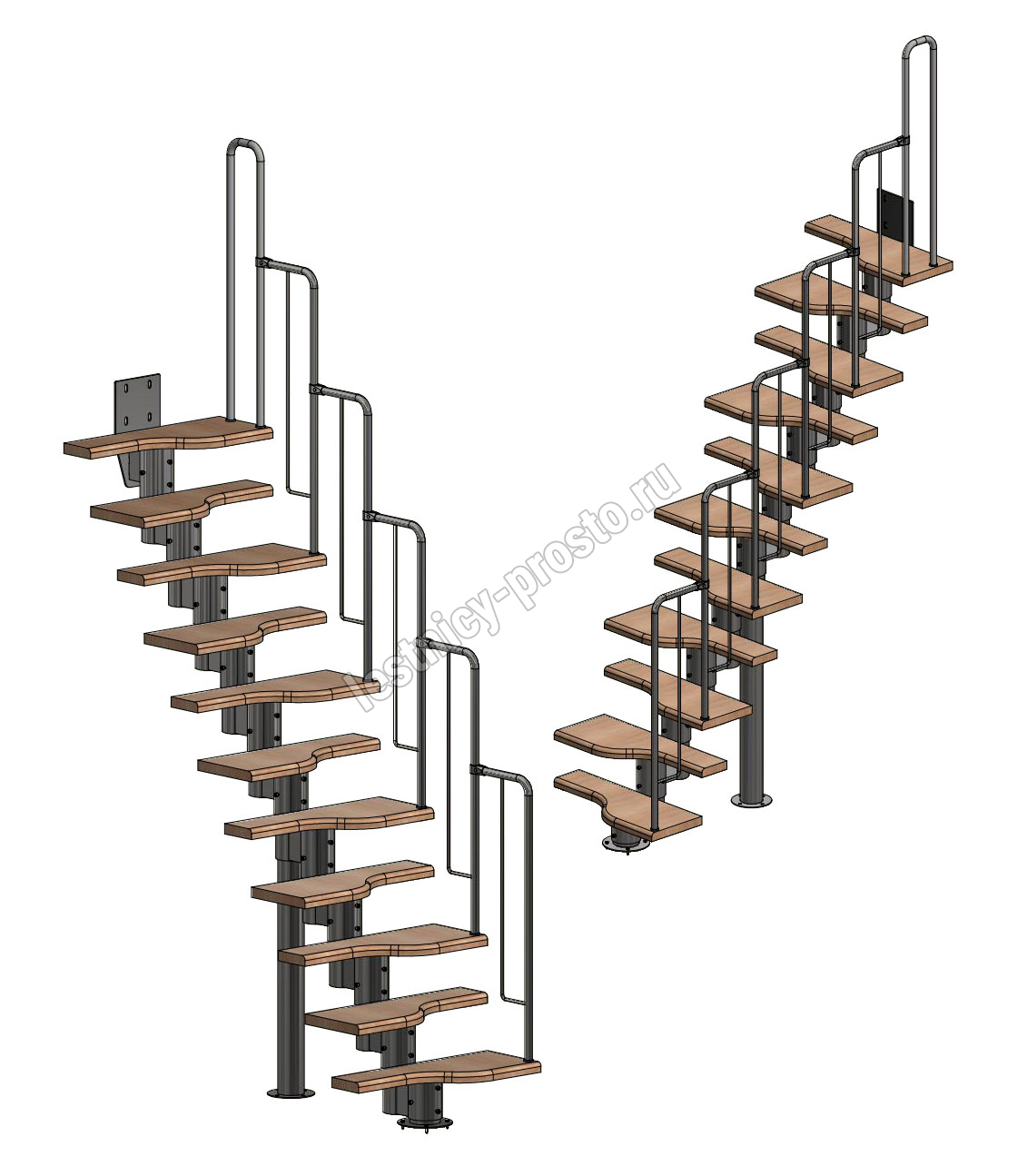 Лестница Prosto Urban Black гусиный шаг 700 мм, h198-288 см (11 ступеней), берёза мультиплекс