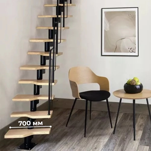 Лестница Prosto Urban Black гусиный шаг 700 мм, h216-312 см (12 ступеней), берёза мультиплекс