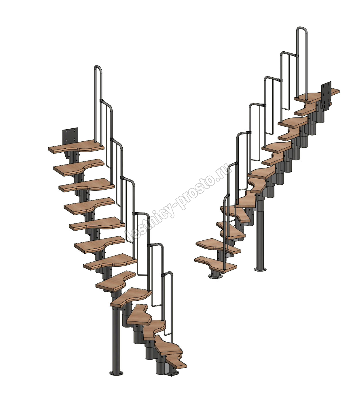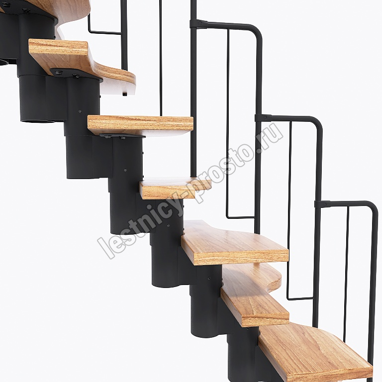 Лестница Prosto Urban Black гусиный шаг 600 мм, h234-336 см (13 ступеней), ясень