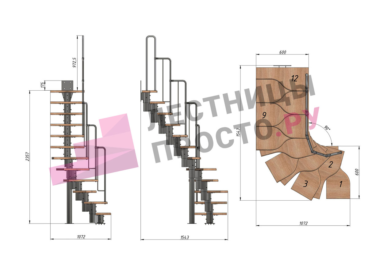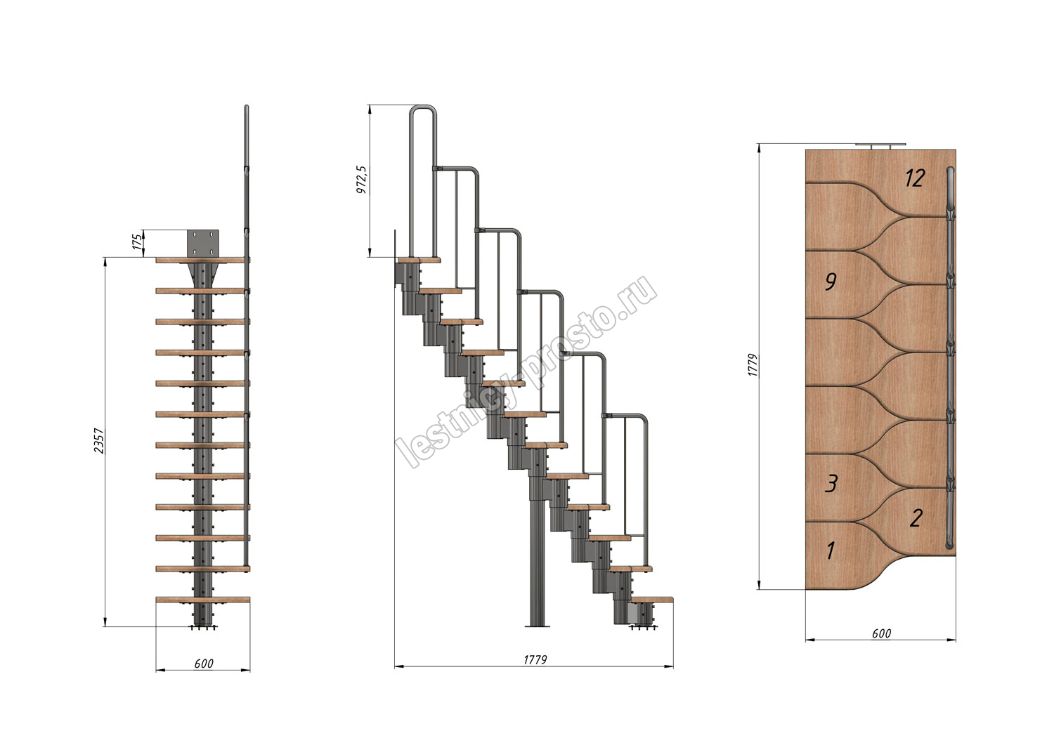 Лестница Prosto Urban Black гусиный шаг 600 мм/ Ступени из берёзы мультиплекс