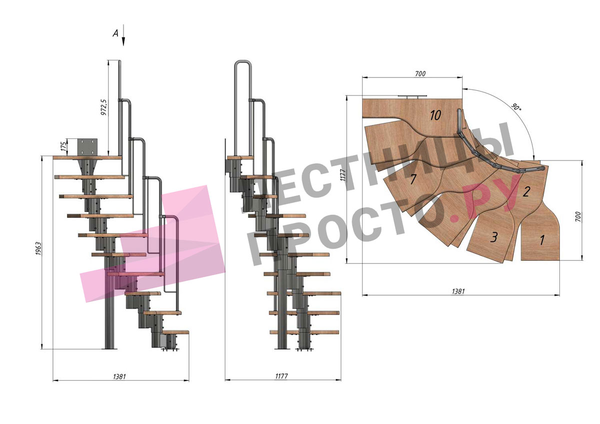 Лестница Prosto Urban White гусиный шаг 700 мм, h180-264 см (10 ступеней), ясень