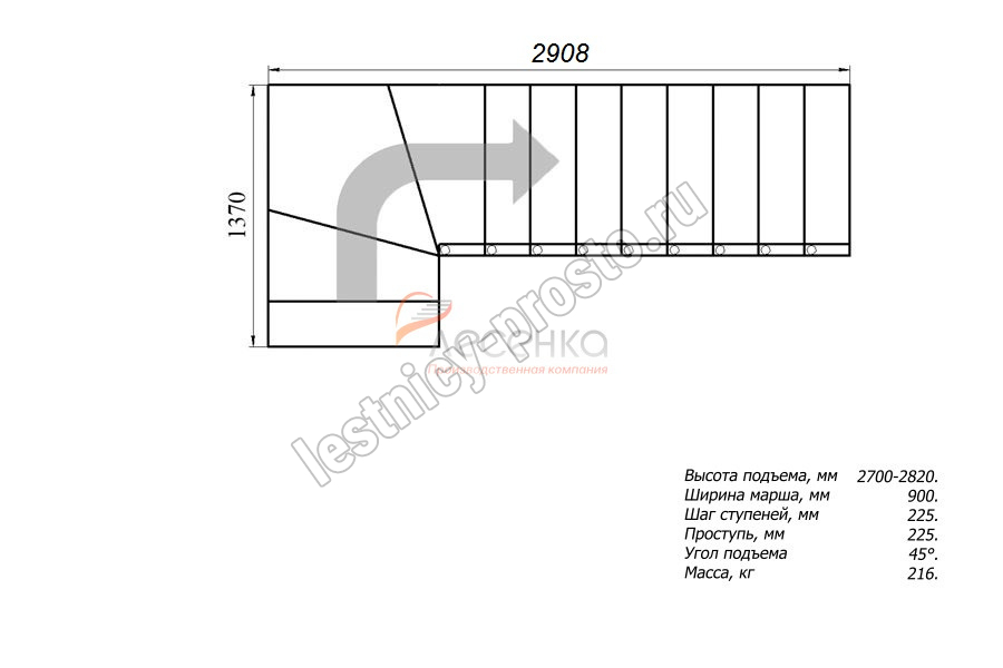 Модульная лестница Фаворит 225 2700-2820, Черный, Лиственница, Крашеная