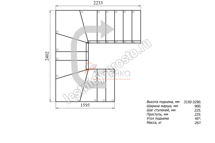 Модульная лестница Спринт 225 3150-3290, Белый, Бук, Нержавеющая сталь