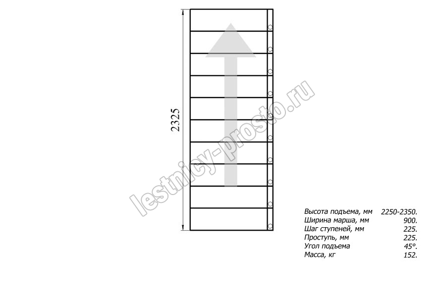 Модульная лестница Стандарт 2250-2350, Серый, Сосна, Крашеная, Без Ступений