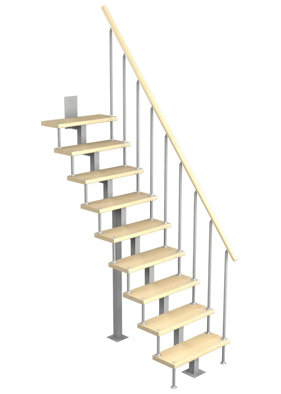 Модульная малогабаритная лестница Эксклюзив 2250-2475, Серый, Лиственница, Нержавеющая сталь