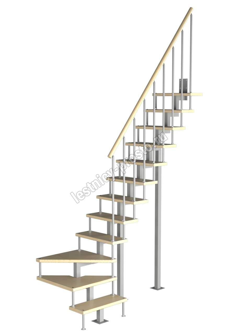 Модульная малогабаритная лестница Компакт 2700-2925, Белый, Бук, Нержавеющая сталь