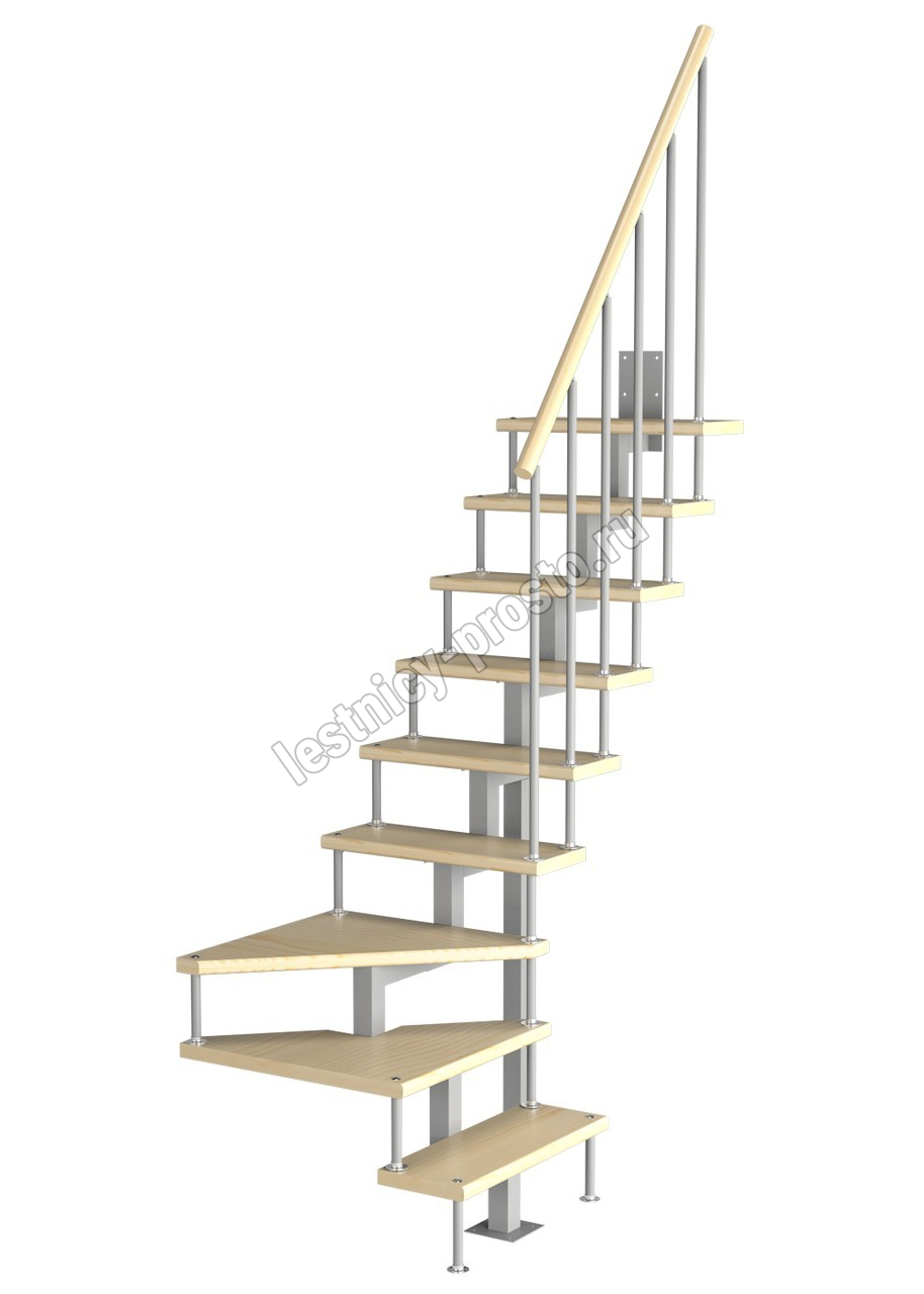 Модульная малогабаритная лестница Компакт 2700-2925, Серый, Сосна, Нержавеющая сталь