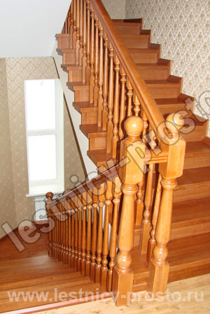 Ступени и перила из лиственницы, остальные элементы из сосны.