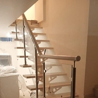 Лестница на второй этаж с ограждением из стекла LP-1-4