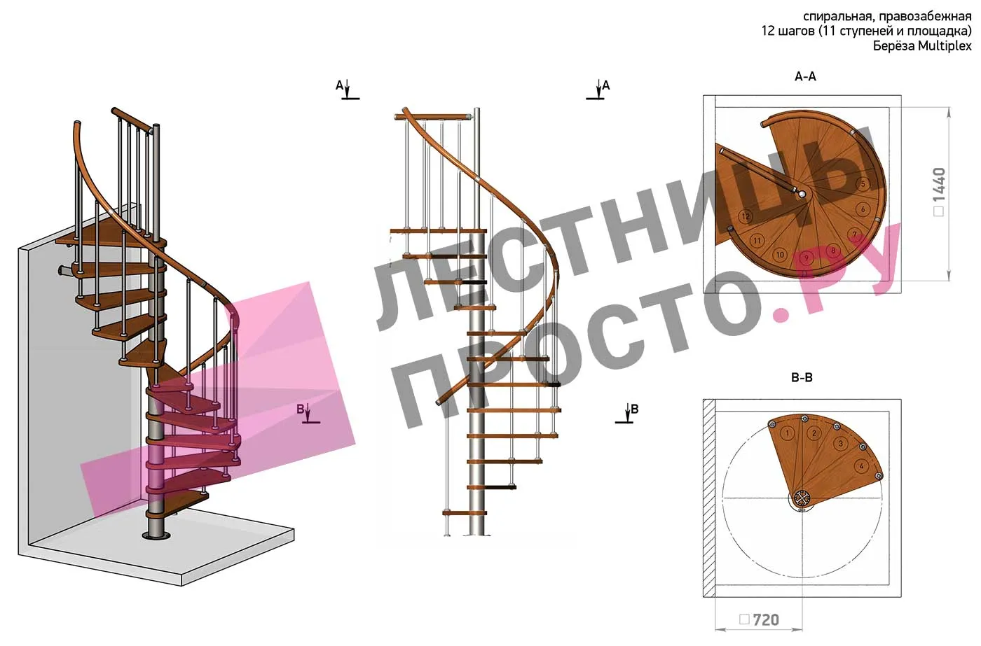 Винтовая лестница Prosto Spiral White D140см, h254.5-289.8 см