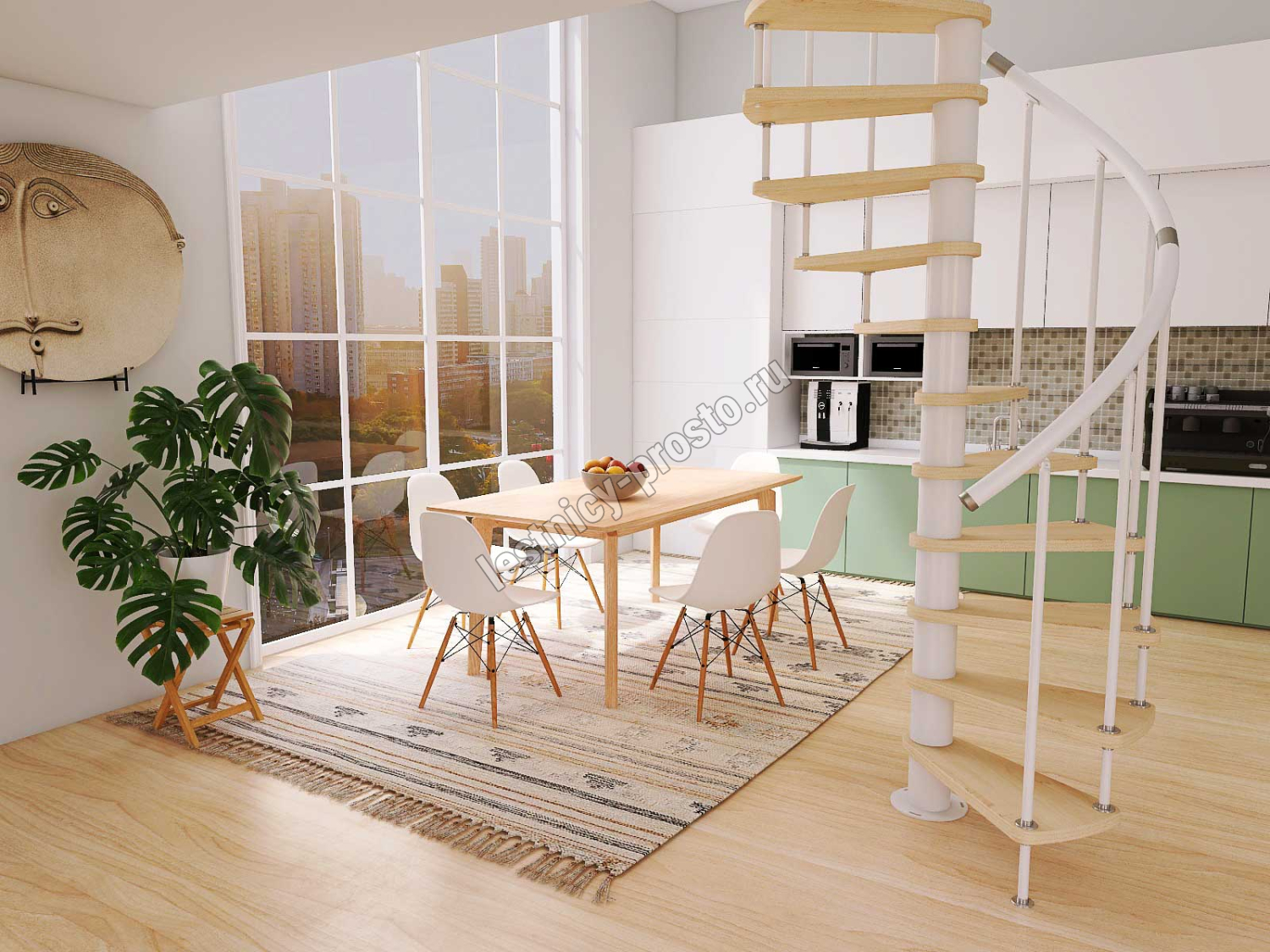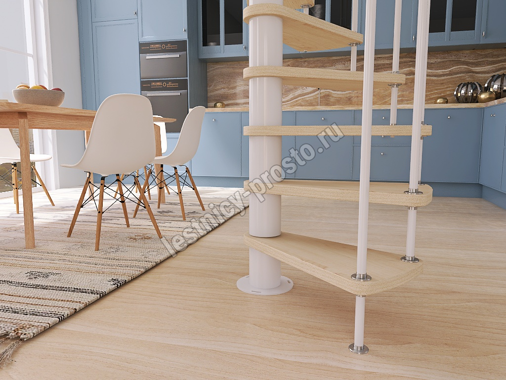 Винтовая лестница Prosto Spiral White D160см, h303.9-348,1 см, бук