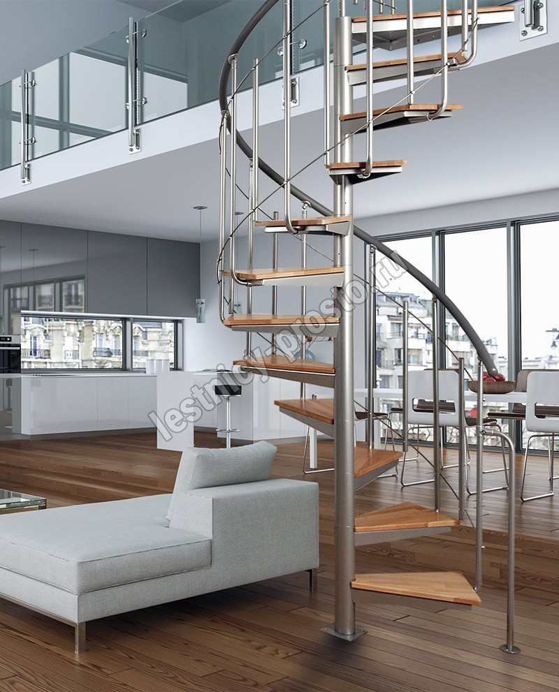 Винтовая лестница Solo vertical серебро, медовая ольха