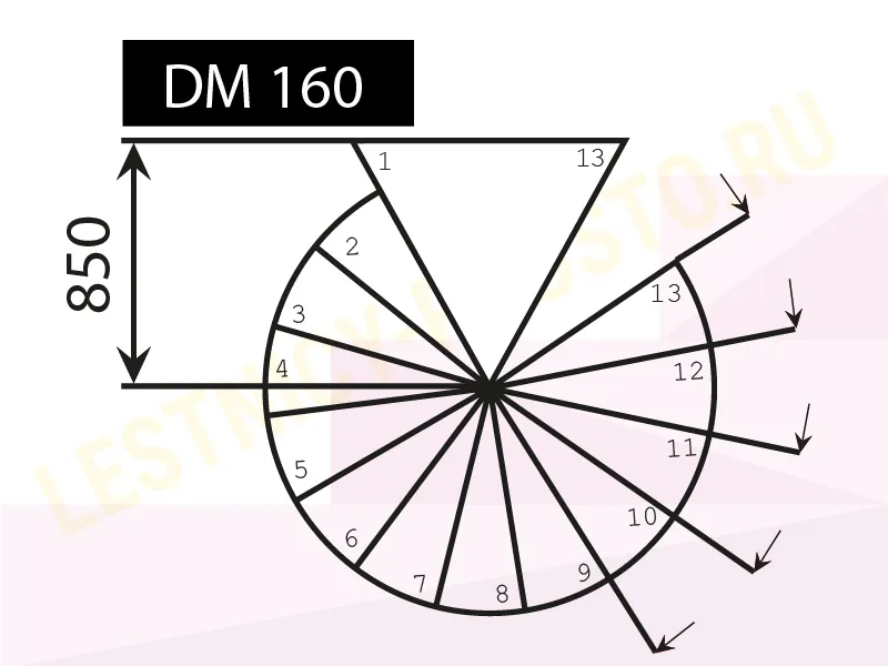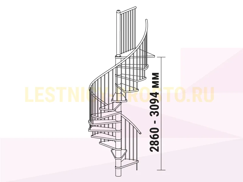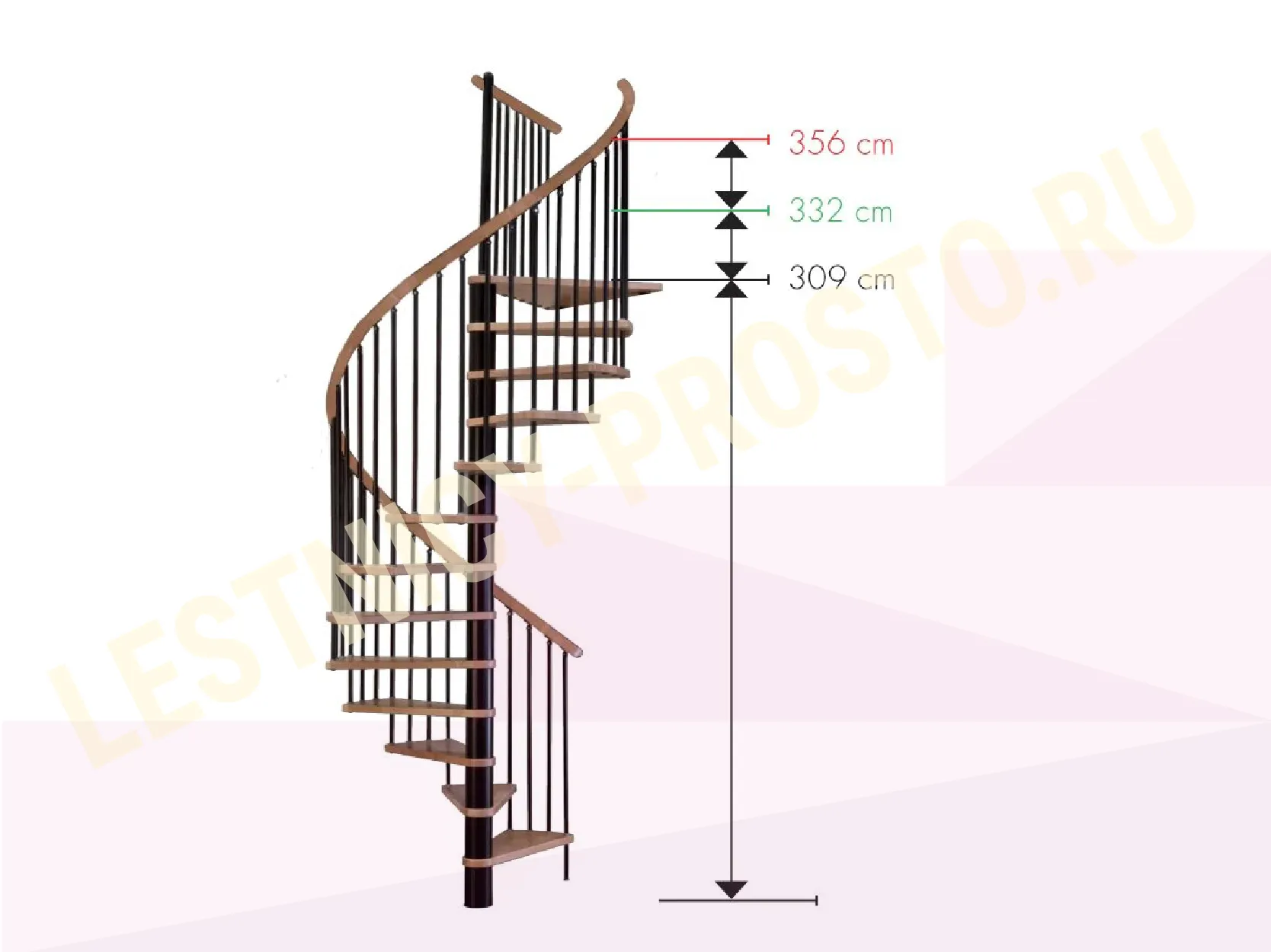 Параметры лестницы SPIRAL WOOD 160 с разным количеством ступеней